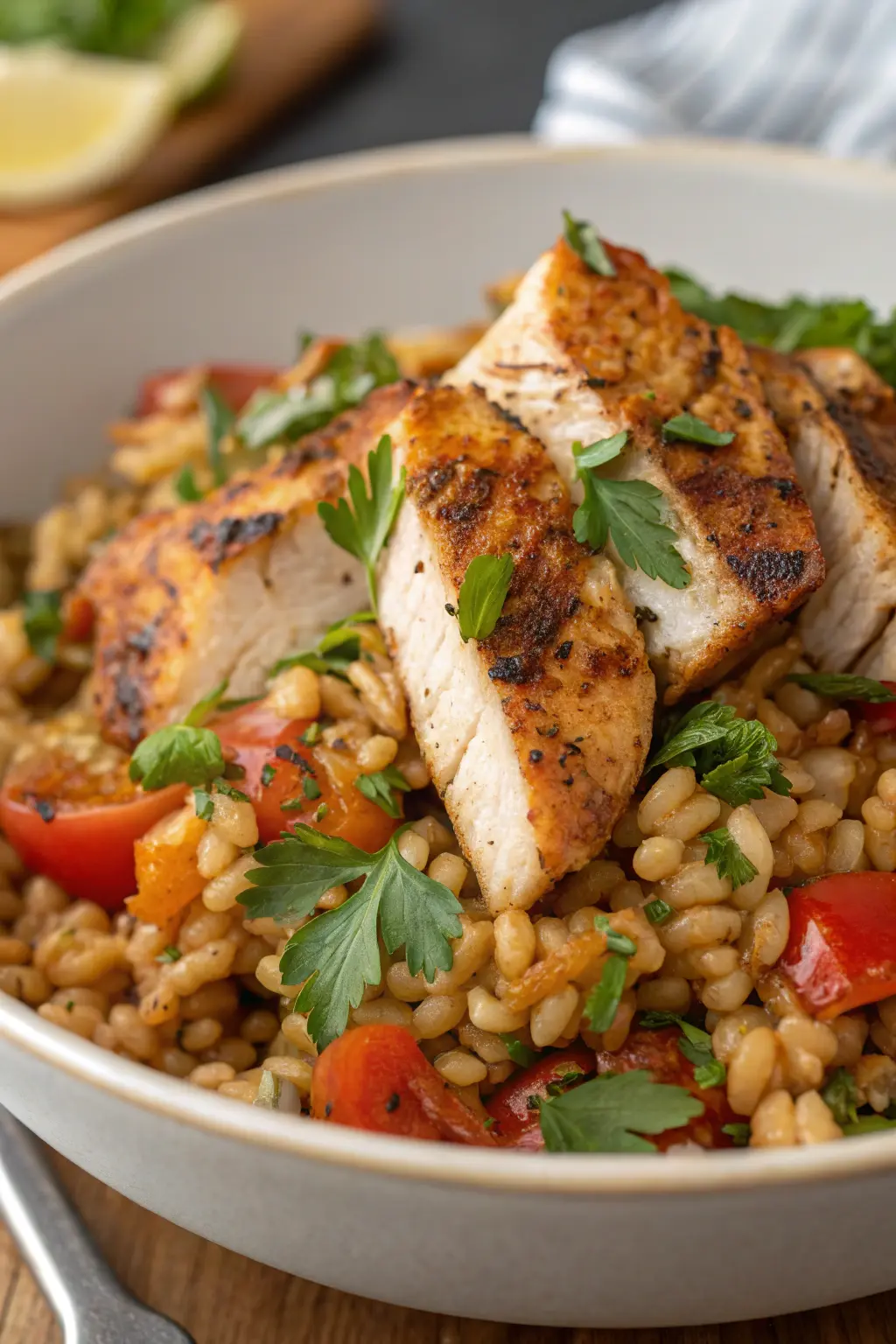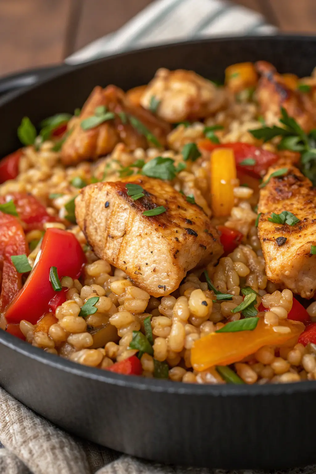- Nestle the chicken thighs on top of the barley mixture. Cook for an additional 10 minutes.