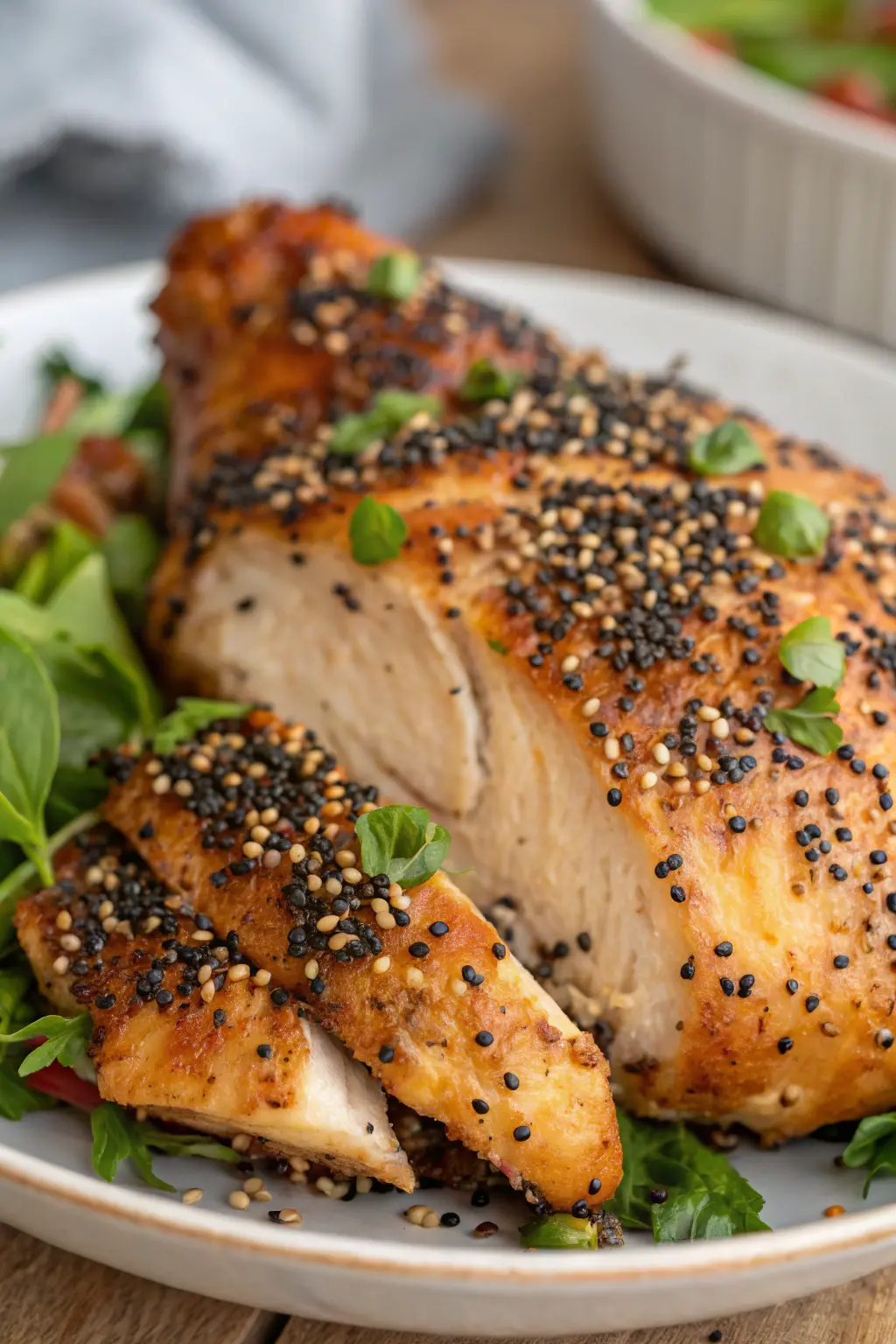 - Sprinkle chia seeds over the coated chicken, pressing gently to help them adhere.