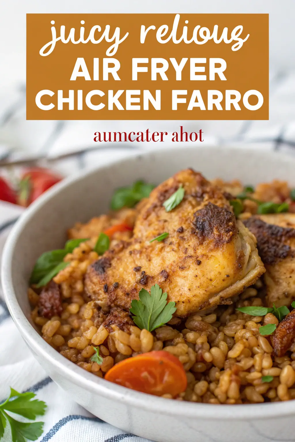A delicious and healthy meal combining tender chicken, hearty farro, and fresh vegetables, all cooked effortlessly in the air fryer.