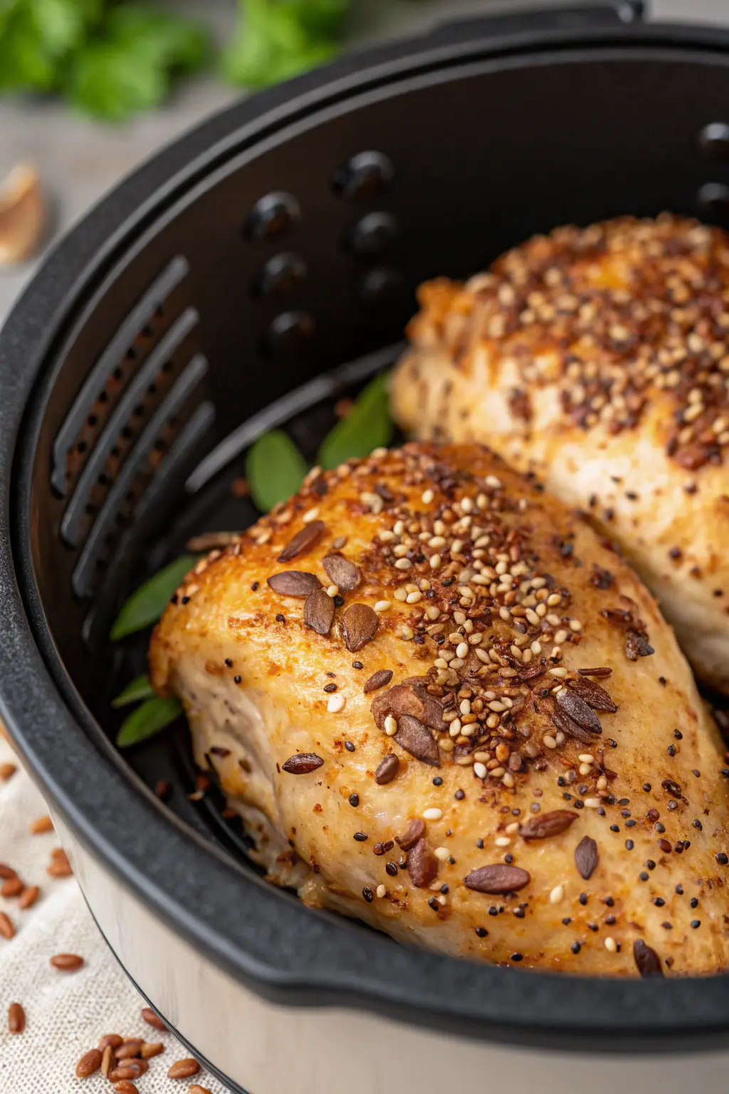 - Remove the chicken from the air fryer and let it rest for 5 minutes before slicing and serving.