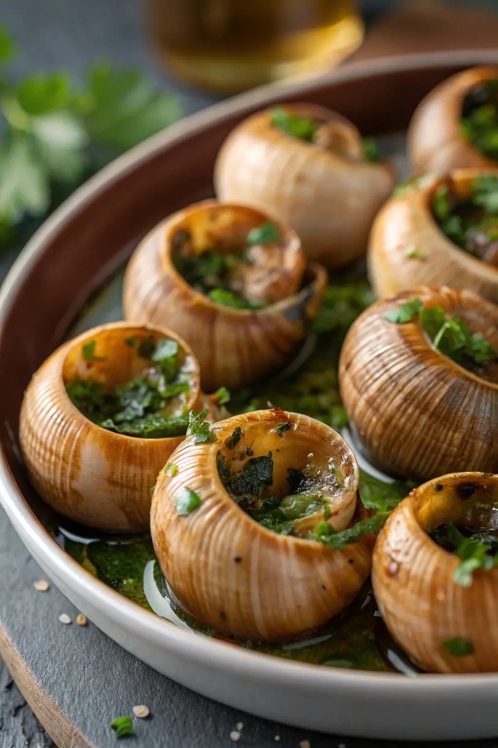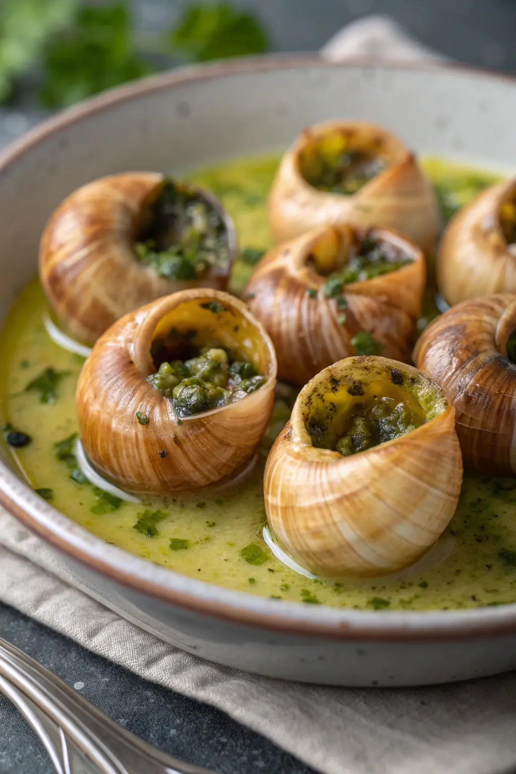 - Place the escargot in a small baking dish or individual pastry shells, if using. Spoon the garlic butter mixture evenly over each escargot.
