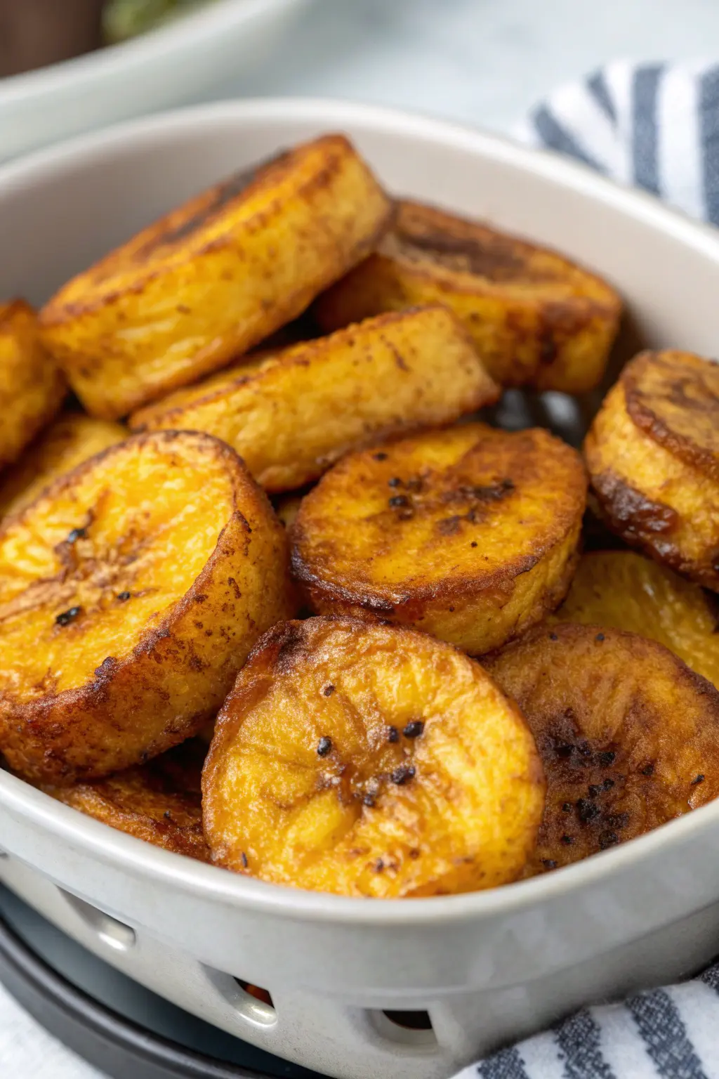 - Continue cooking for an additional 6 minutes or until the plantains are golden brown and crispy.