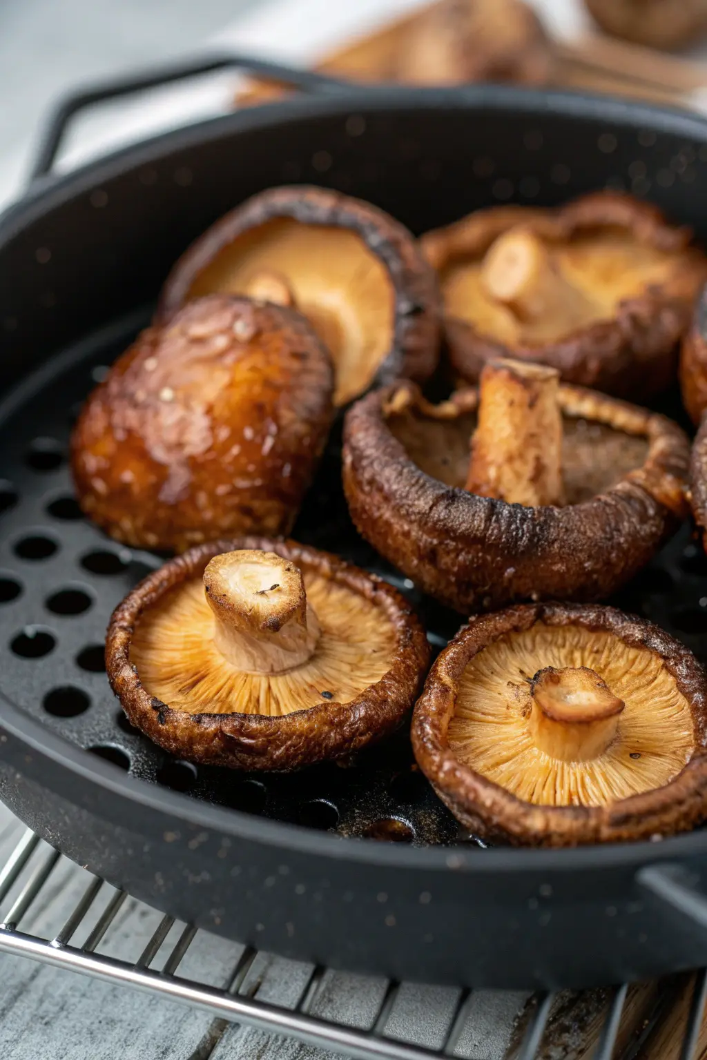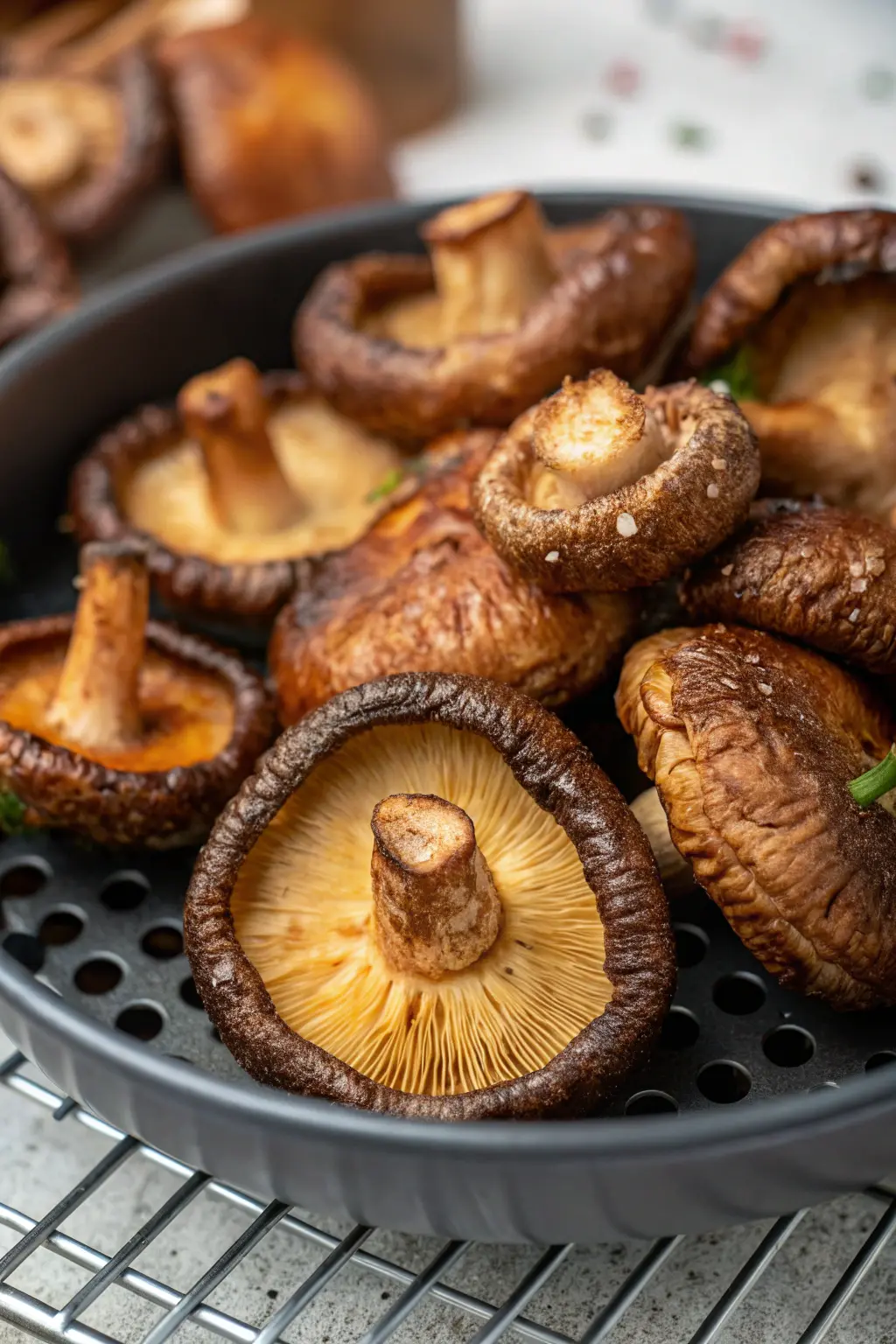 - In a large bowl, combine the shiitake mushrooms, olive oil, garlic powder, salt, and black pepper. Toss until the mushrooms are evenly coated.