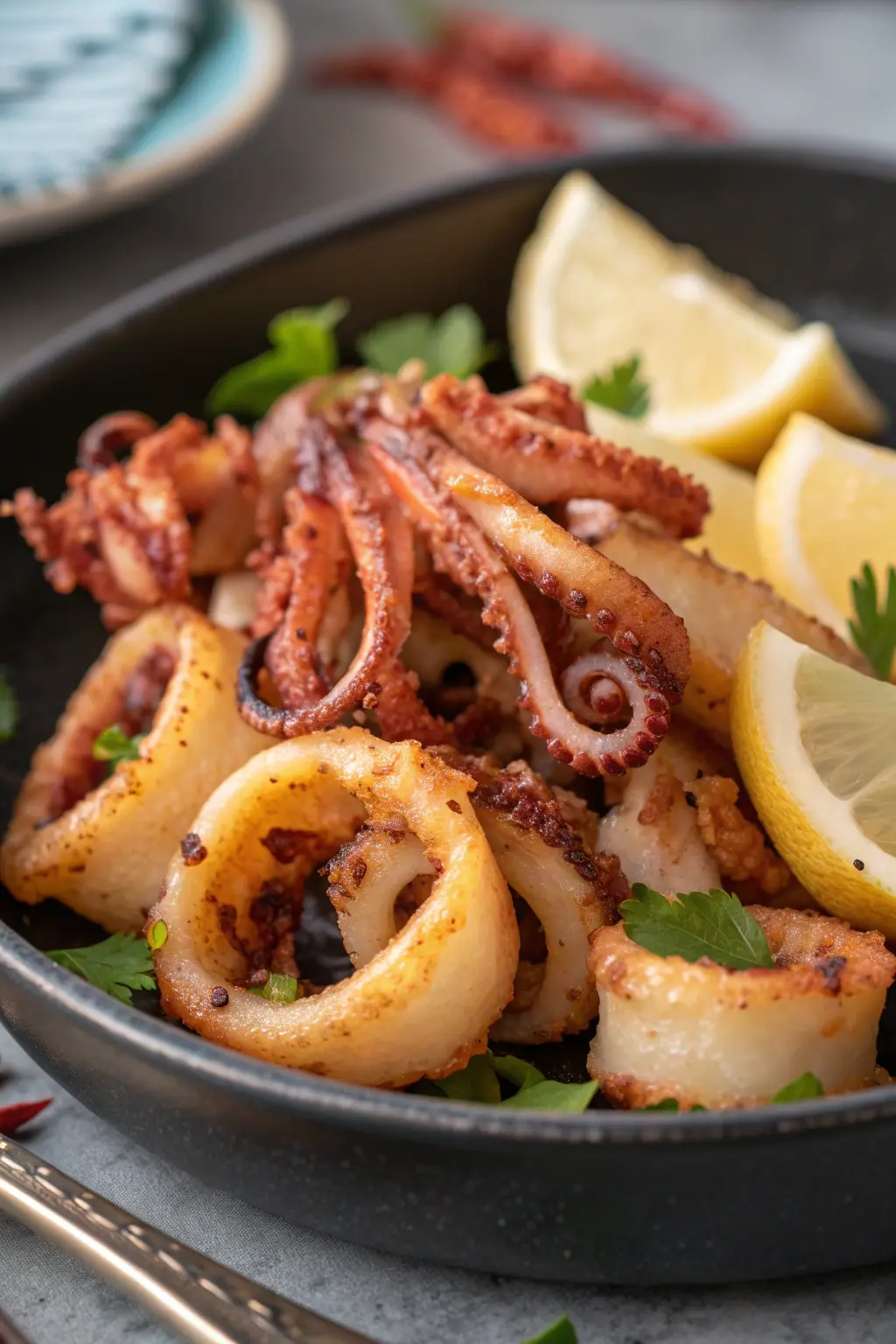 For extra flavor, marinate the squid in lemon juice, garlic, and herbs for 30 minutes before breading. Serve with a squeeze of lemon or your favorite dipping sauce for an added zest.