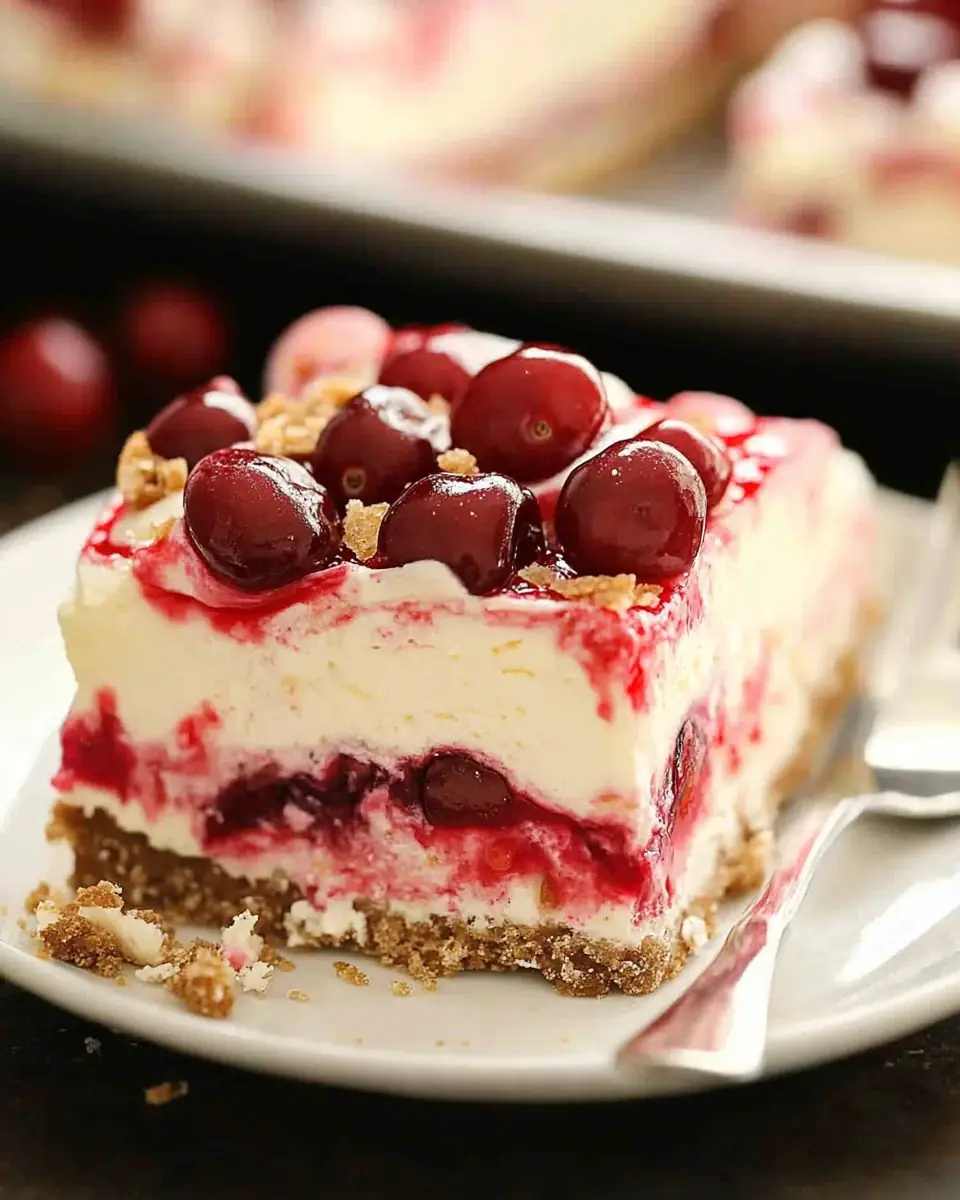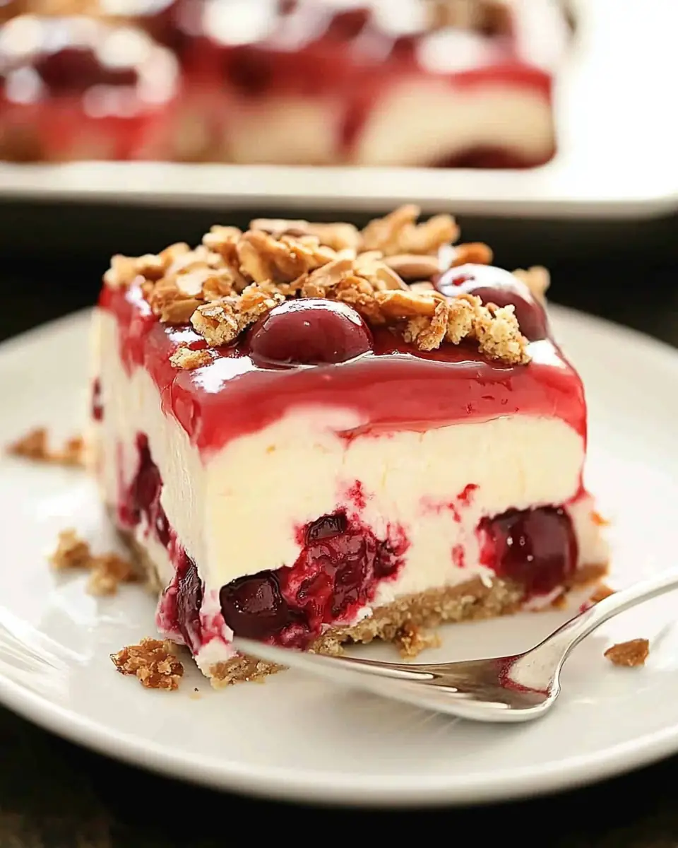 With its creamy layers and sweet cherry topping, this dessert is sure to be a hit with both adults and children alike. The familiar flavors of cherries and cream cheese harmonize beautifully, offering a taste that appeals universally. It’s the kind of dish that disappears quickly from the dessert table, leaving everyone satisfied and eager for more. The combination of sweet, tangy, and creamy elements ensures that each bite is a delightful experience.