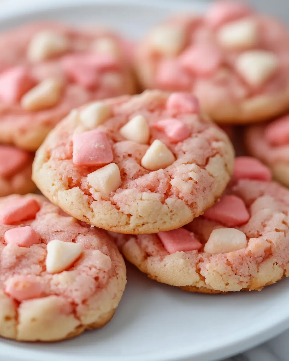 The strawberry cake mix infuses each cookie with a fruity sweetness that pairs beautifully with creamy white chocolate chips. This combination brings a refreshing twist to traditional cookies, offering a balance of flavors that is both delightful and exciting. The burst of strawberry flavor is reminiscent of summer days, while the white chocolate adds a touch of indulgence.